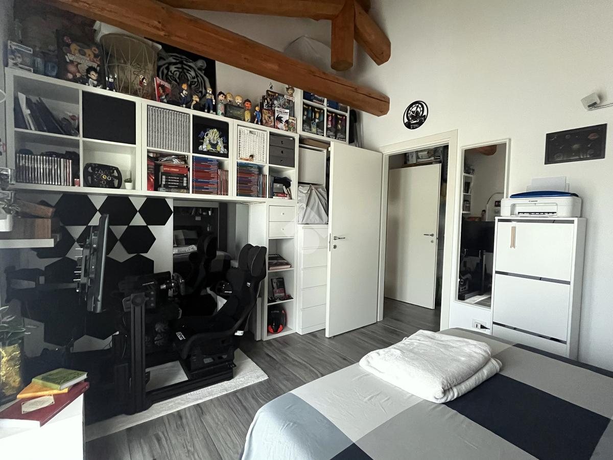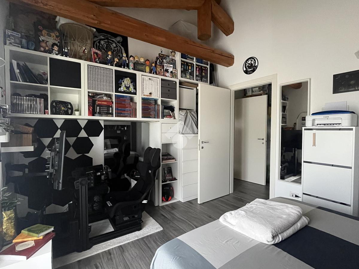 L'appartamento si trova al primo ed ultimo piano. Zona giorno caratterizzata dalle travi a vista in legno e da una doppia esposizione che regala luminosità, con cucina a vista ed uscita su comodo e particolare balcone. Spaziosa camera matrimoniale sempre con travi a vista, disimpegno con spazio per armadiature e bagno con doccia.